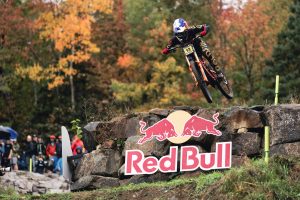 Jackson Goldstone closed the curtains on an epic season of World Cup DH racing to win by a huge margin on the classic Mont-Sainte-Anne DH track. His run was a…