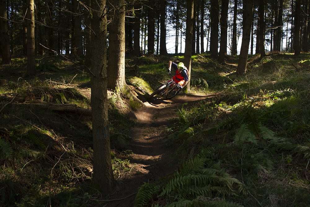 Tributary trails feed in and out of the track we’re riding. Each looks as tempting as the last. A healthy riding and digging scene along with a mix of gradients and terrain have lead to the creation of trails of all description and in Chris’ opinion the trails are getting gnarlier thanks to bike development. The bike you ride will dictate the trails you prefer, the advent of bikes with longer, more stable, wheelbases coupled with low bottom bracket heights and slack head angles has shifted riding preferences so that we’re going in search of harder and harder trails. Trails that once were taxing have become easily achievable thanks to advances in geometry and suspension and so the trail builders have had to create greater challenges. In their wake they’ve left a legacy of trails.