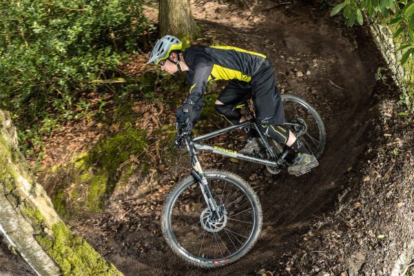 Drop your heels slightly — keeping the tension here means you can centre your mass, and use your legs to control your position and absorb the shocks and bumps