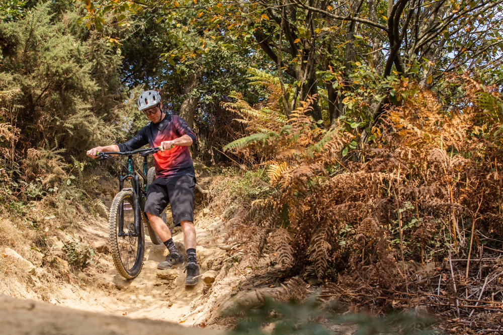 Figure out your saddle next – you need to have it high for pedalling up and drop it low for the descents so you can get low to the bike. That’s easy if you have a dropper post, but entry-level hardtails don’t have them. Familiarise yourself with the quick-release lever on the seat tube, or buy one online and fit it if your bike doesn’t come with one.